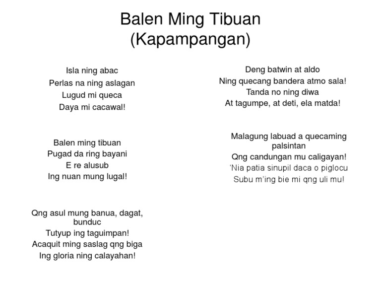Lyrics Ning Lupang Hinirang A Kapampangan